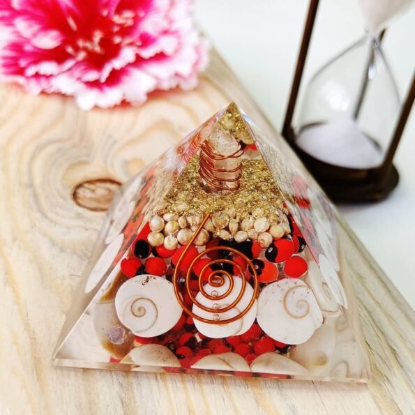Reiki Stones Chirmi Orgone Pyramid,Orgone Pyramid with Red & White Chirmi Seeds